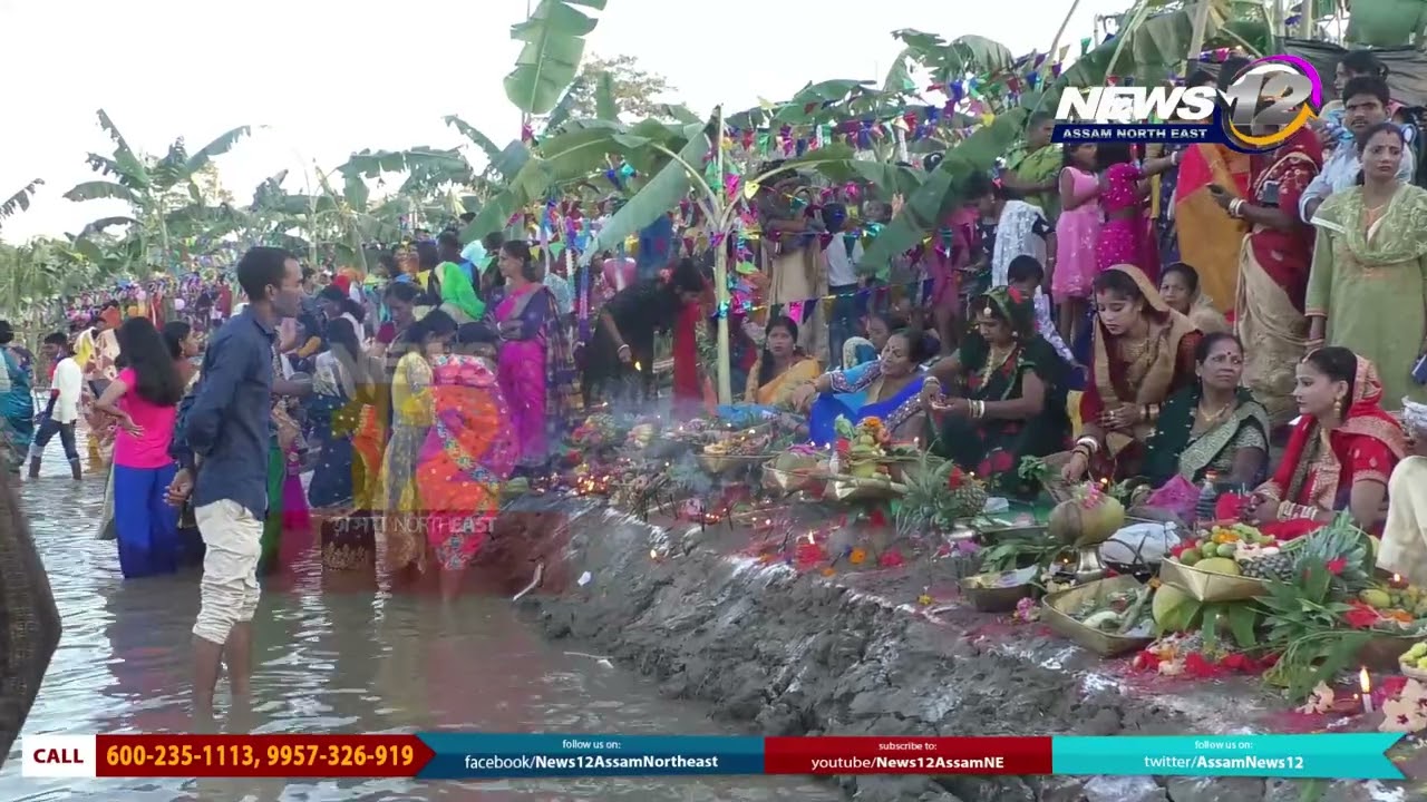 बोकाजान के धनश्री नदी पर डूबते सूर्य को अर्घ दिया गया,बड़ी तादात में आए श्रद्धालु | News 12 Assam NE