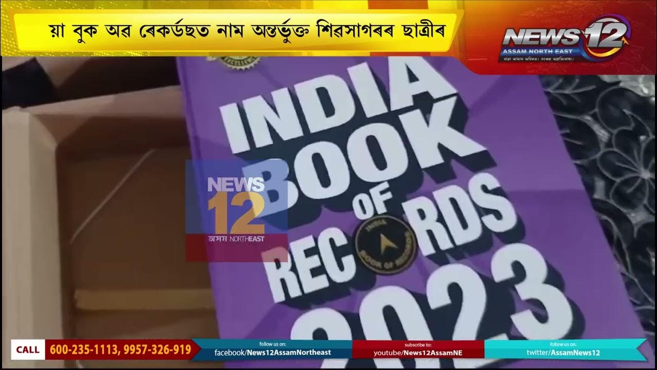 Published on YouTube: ইণ্ডিয়া বুক অৱ ৰেকৰ্ডছত নাম অন্তর্ভুক্ত শিৱসাগৰৰ ধ্যানী দৃষ্টি কাশ্যপৰ | News 12 Assam North East ইণ্ডিয়া বুক অৱ ৰেকৰ্ডছত নাম অন্তর্ভুক্ত শিৱসাগৰৰ ছাত্ৰীৰ ... https://www.youtube.com/watch?v=xEzZ5vB_Tyo